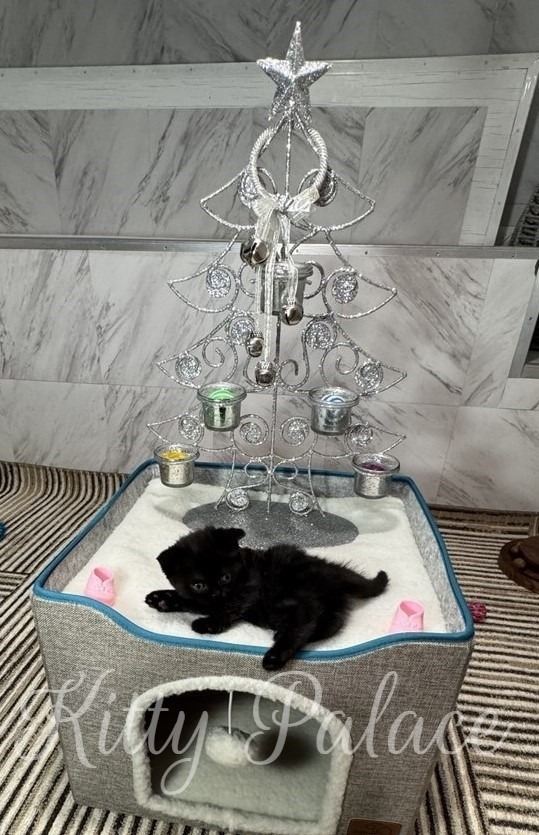 If you want a black scottish fold kitten with a soft and steady personality, Ashley may be the right match. She has a deep black coat, folded ears, and a quiet charm. However, her gentle attitude is what you notice first.