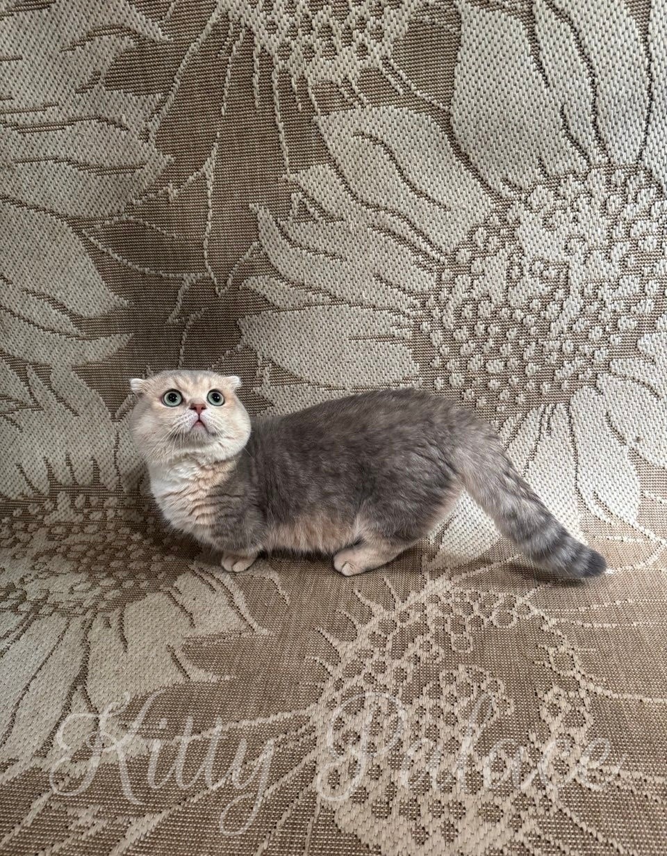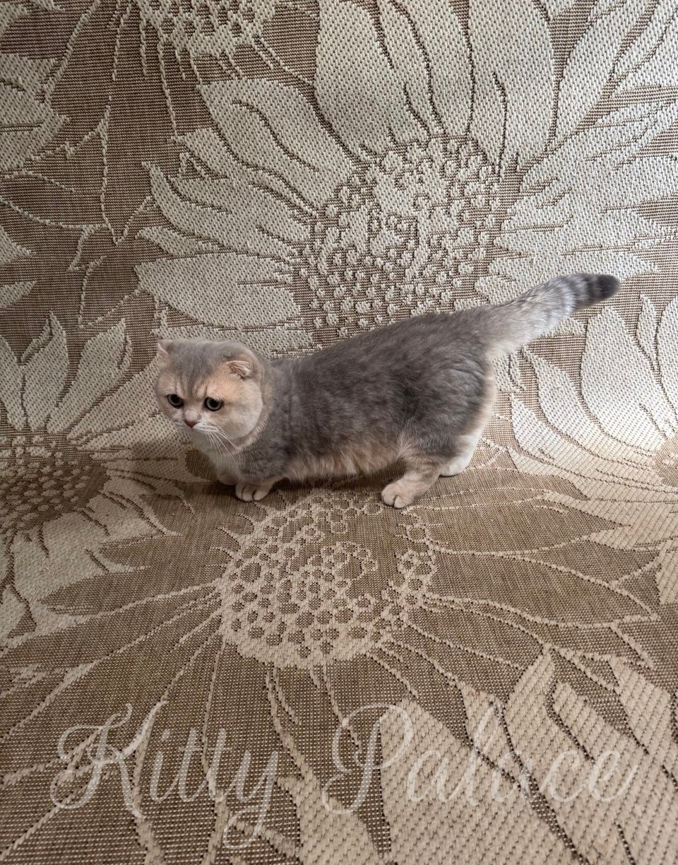 Are you dreaming of a playful and rare blue golden Munchkin Fold cat? Then Clever might be exactly what you’re searching for. With his charming short legs, soft spotted coat, and bright eyes, he wins hearts in an instant. Not only is he adorable, but he’s also gentle, curious, and affectionate—ready to bring joy to any home.